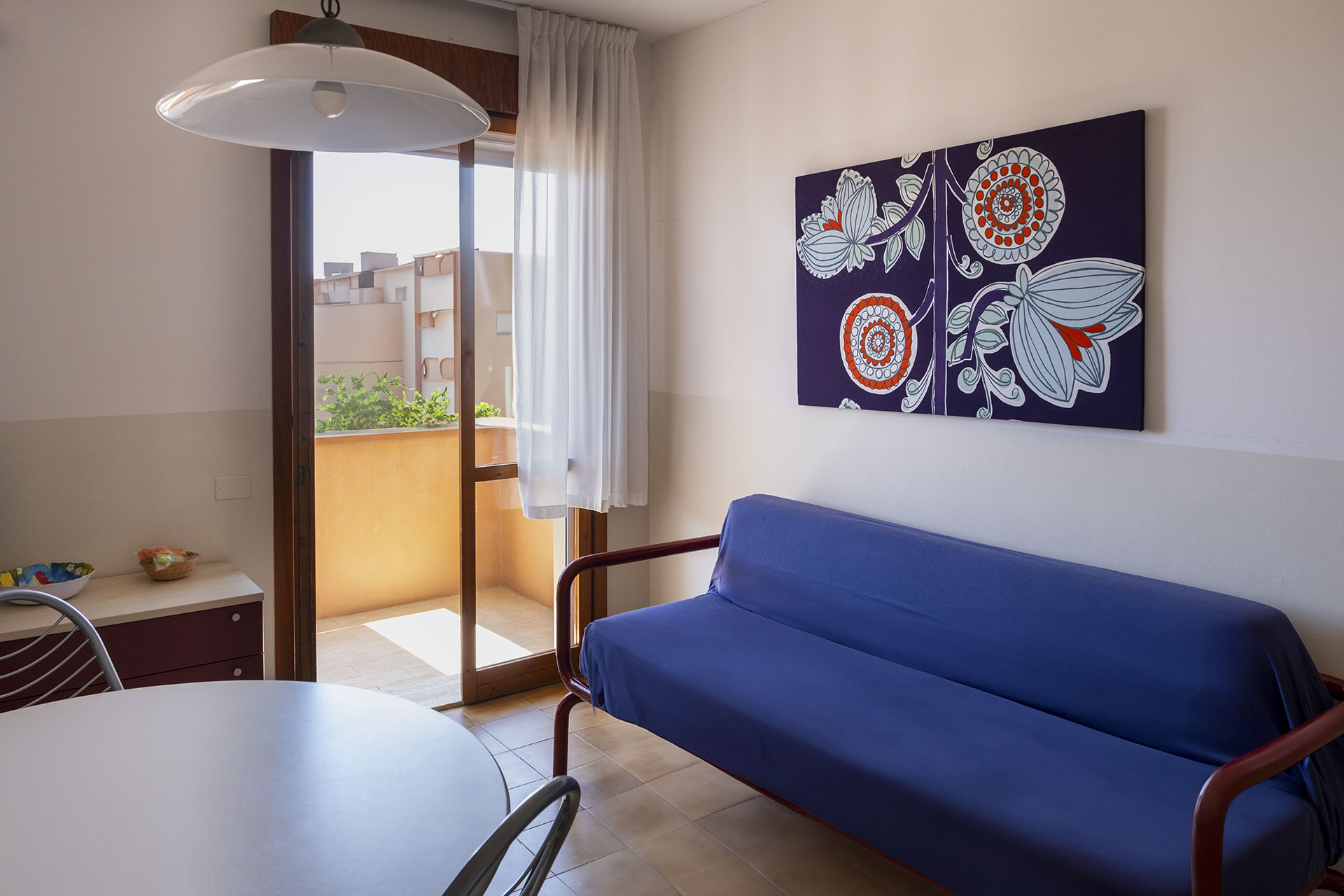 2 Schlafzimmer mit einem Doppelbett, 2 Einzelbetten und 1 Einzel-Schlafsofa. Alle Apartments verfügen über ein Wohnzimmer mit Küche, ein Bad und einen Balkon.